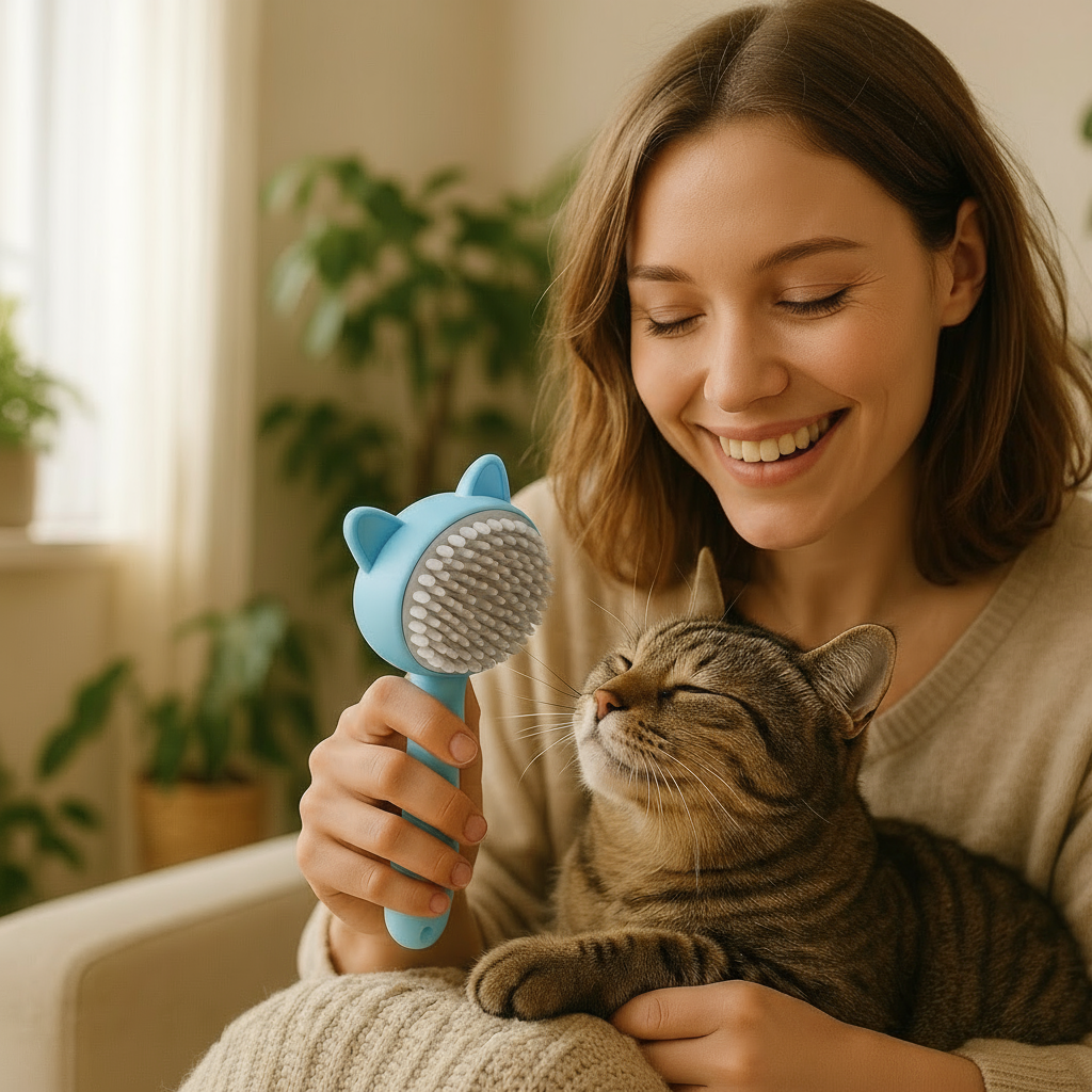 •One-Click Clean • Anti-Static Mist • Safe Rounded Bristles • USB-Rechargeable